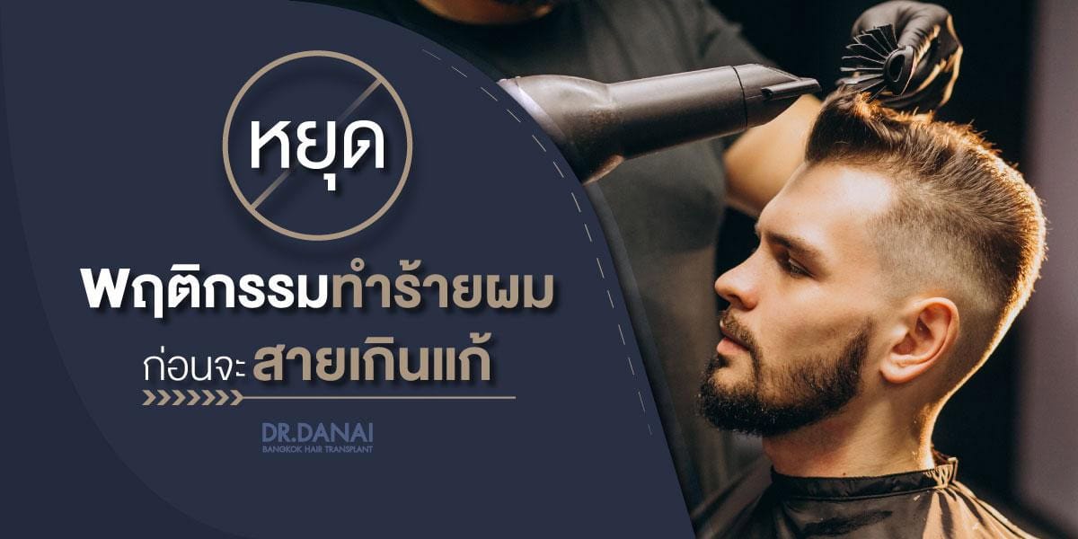 การดูแลเส้นผมละหนังศีรษะก่อนที่จะเกิดปัญหา เป็นสิ่งที่จำเป็นเป็นอย่างมากเลยนะครับ เพราะหากเกิดปัญหาไปแล้ว แต่พฤติกรรมการใช้ชีวิตของเรายังเหมือนเดิมก็อาจจะทำให้ปัญหานั้นยิ่งลุกลามเกิดเป็นอาการผมร่วง เส้นผมลีบ หัวเถิก ศีรษะล้าน ร้ายแรงที่สุดอาจจะต้องเข้ารับการรักษาปลูกผมแบบย้ายรากได้ ซึ่งยิ่งชะล่าใจไม่ยอมปรับพฤติกรรมเหล่านี้นานเท่าไหร่ การรักษาก็ยิ่งยากเท่านั้น แล้วพฤติกรรมทำร้ายผมไหนล่ะที่ควรจะหลีกเลี่ยงหรือหยุดไปเลย หมอได้รวบรวมมาให้แล้วครับ
