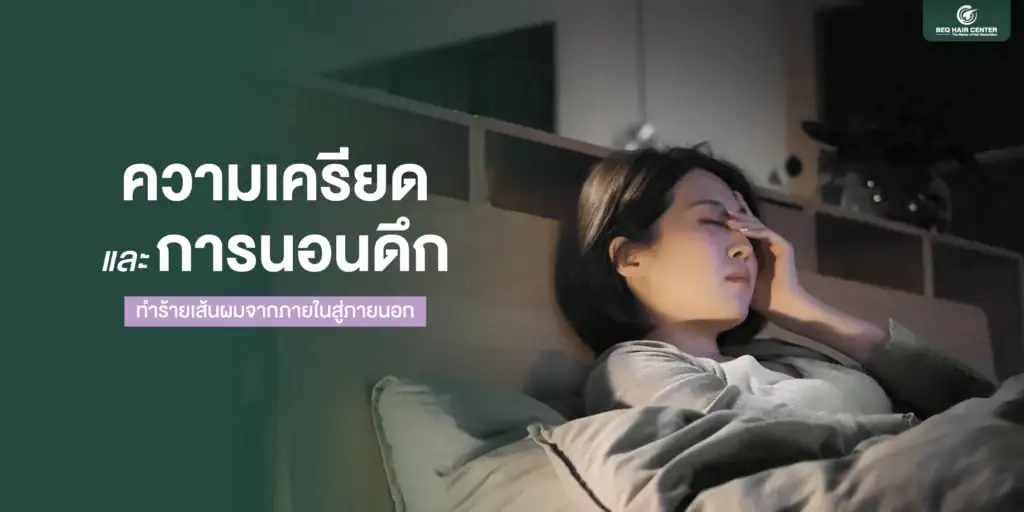 การนอนหลับคือช่วงเวลาที่ร่างกาย “ซ่อมแซม และฟื้นฟูตัวเอง” รวมถึงการฟื้นตัวของ เซลล์รากผม ด้วยเมื่อคุณนอนหลับไม่เพียงพอ ฮอร์โมนที่เกี่ยวข้องกับการเจริญเติบโตของเส้นผม เช่น โกรทฮอร์โมน (Growth Hormone ) จะถูกผลิตน้อยลง ในขณะที่ฮอร์โมนความเครียดกลับสูงขึ้น