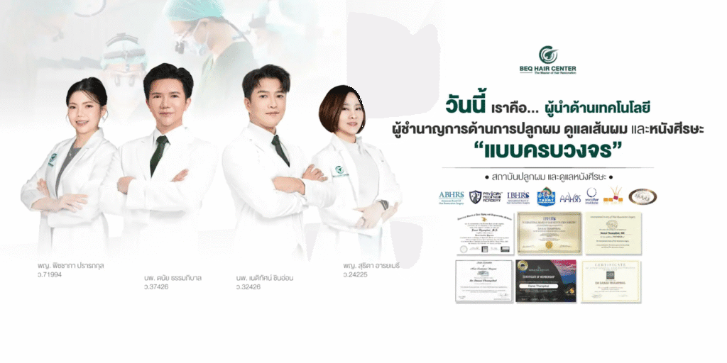 ที่ BEQ Hair Center มีทีมแพทย์เฉพาะทางด้านเส้นผม และหนังศีรษะ ที่จะช่วยวิเคราะห์ปัญหา และออกแบบการรักษาเฉพาะบุคคล เพื่อที่จะสามารถแก้ปัญหาได้อย่างตรงจุด และทำให้สุขภาพเส้นผม และหนังศีรษะกลับมาแข็งแรงได้อีกครั้ง